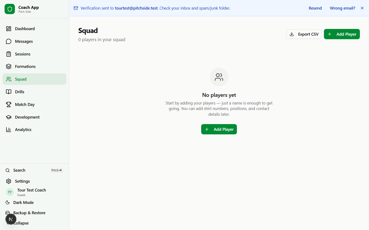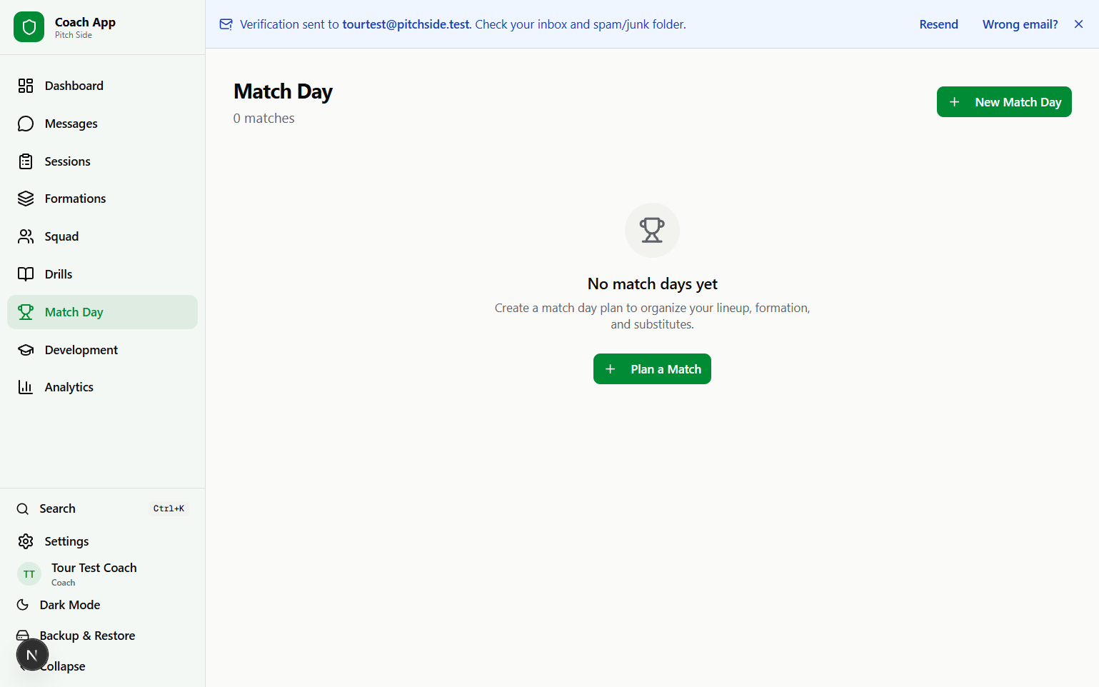 Everything here was built because a grassroots coach needed it. Session planning, squad lists, formations, match day prep — the stuff that used to live on scraps of paper and in WhatsApp groups.